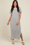 Blue Textured Sweetheart Neck Short Puff Sleeve Tiered Maternity Midi Dress