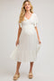 Details A floral printed dress featuring short dolman, ruffle accent sleeves and a tiered skirt. Content + Care