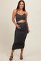 Blue Velvet Floral Ruched Mesh Maternity Midi Dress