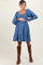 Blue Vintage Wash Chambray Smocked Maternity Midi Dress