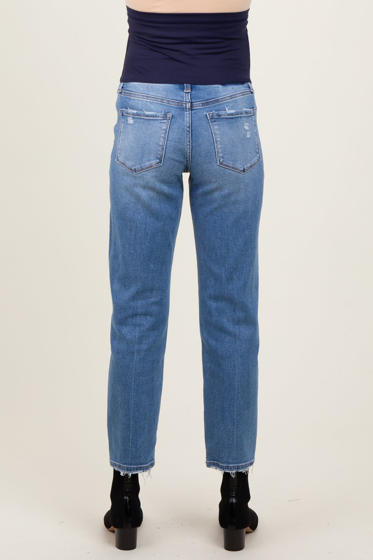 Blue Vintage Wash Cropped Straight Leg Maternity Jeans