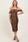 Brown Animal Print Off Shoulder Ruched Mesh Midi Dress