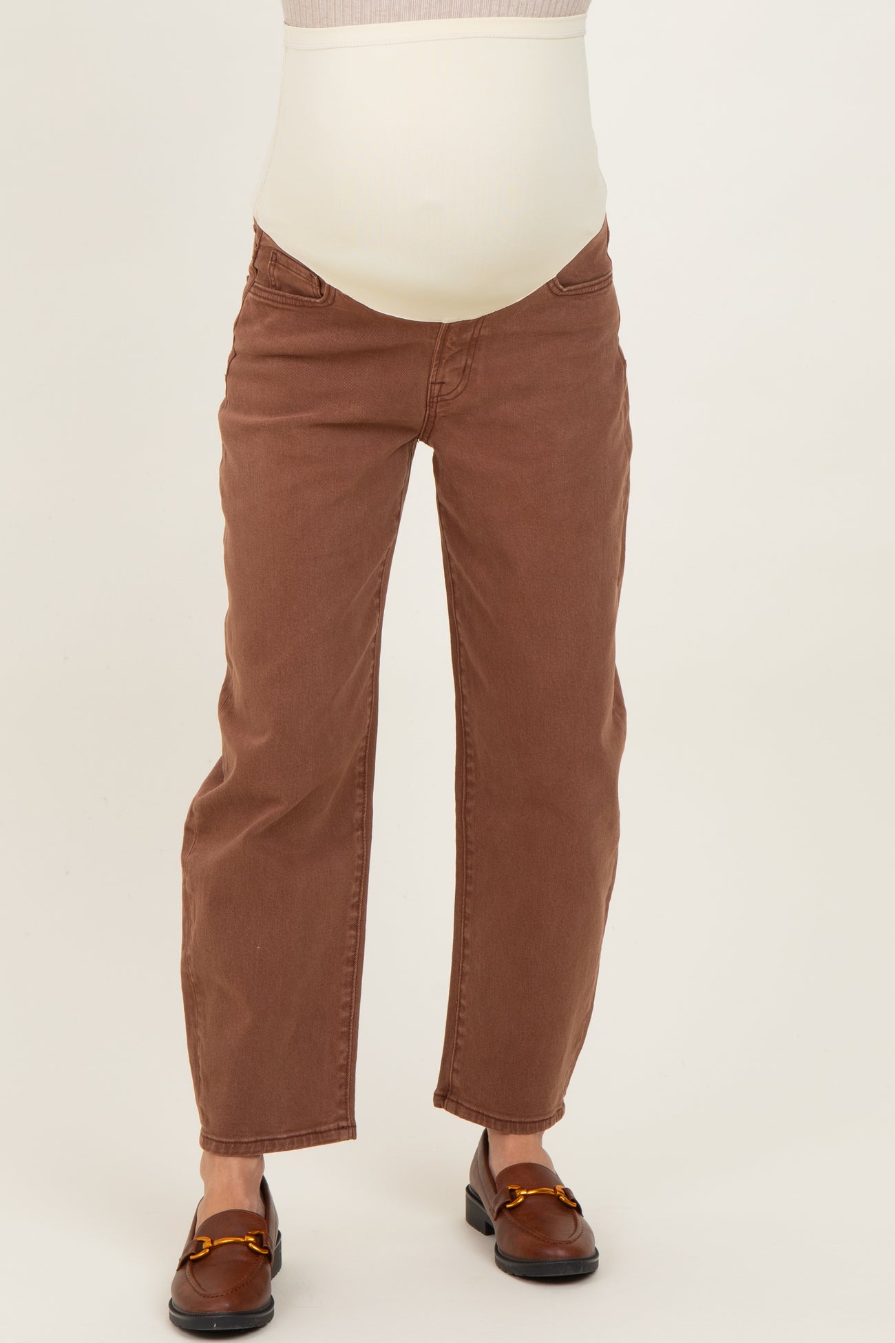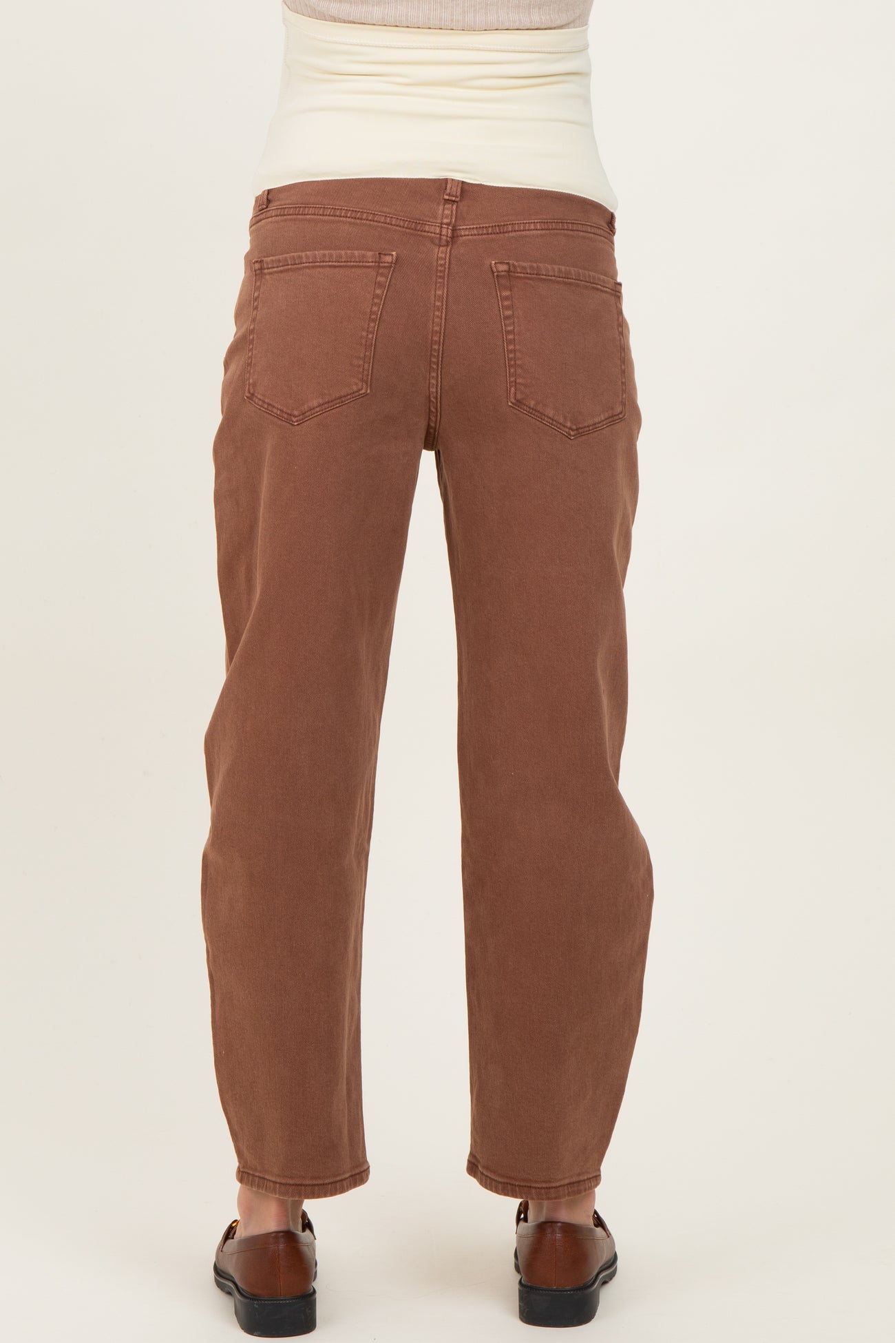 Stay stylish and comfortable throughout your pregnancy with our Brown Ankle Barrel Leg Maternity Jeans. Designed with a chic barrel leg silhouette, these jeans offer a relaxed fit that complements your changing shape. The soft, stretchy fabric ensures all-day comfort, while the ankle-length cut adds a modern touch to your maternity wardrobe. Featuring an adjustable waistband for a perfect fit as your bump grows, these jeans pair effortlessly with any top or sweater for casual or semi-formal looks. Durable and versatile, they’re a must-have staple for every expectant mom's closet.