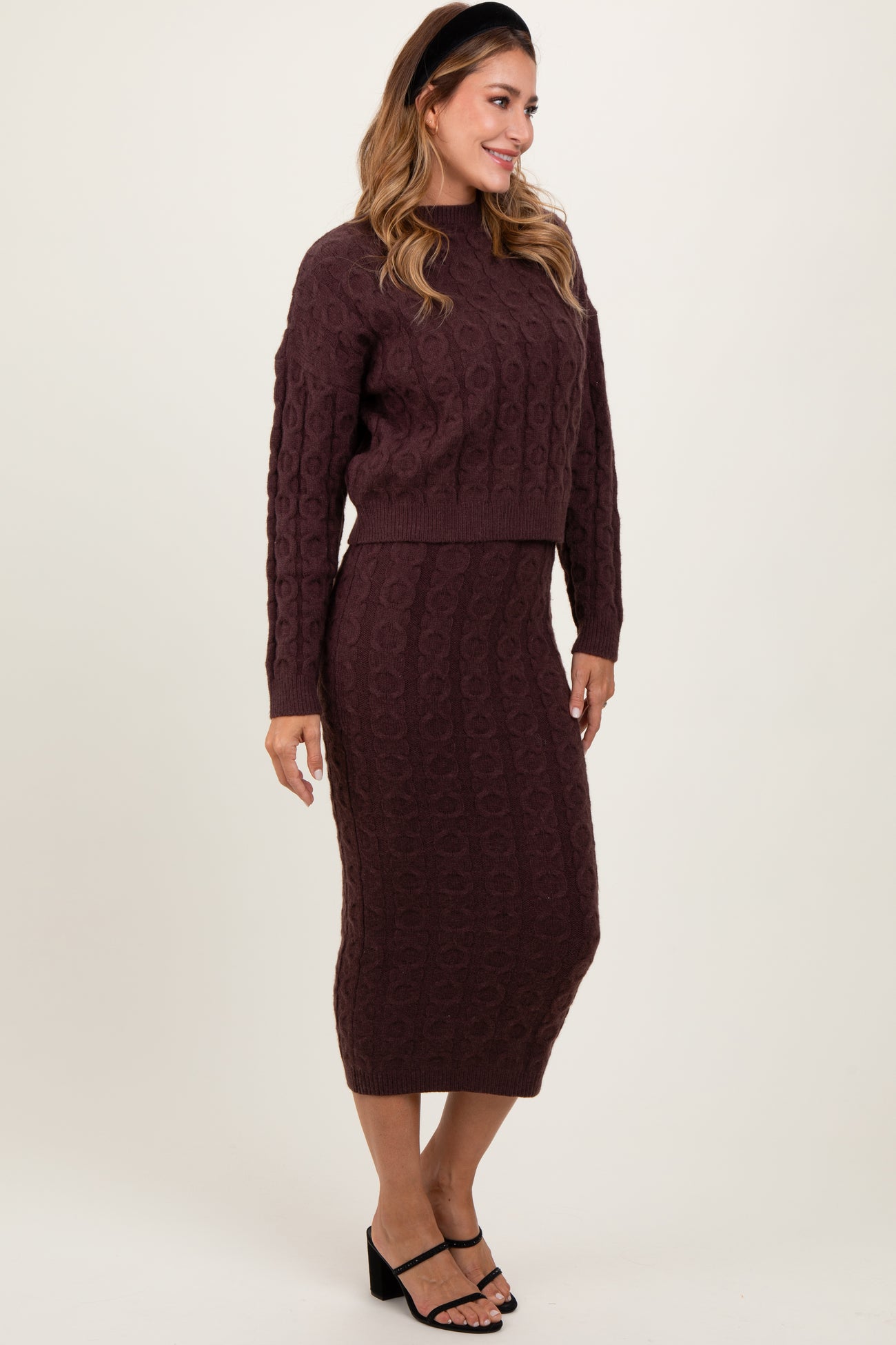 Brown Cable Knit Cropped Sweater Midi Skirt Set