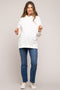 A checkered maternity sweater featuring a rounded neckline and long puff sleeves.