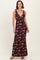 Brown Floral Deep V-Neck Sleeveless Maxi Dress