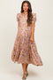 Brown Floral Mesh Overlay Ruched Maternity Midi Dress
