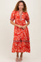 Brown Floral Square Neck Long Sleeve Maxi Dress