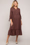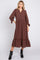 Brown Gingham Front Button Sleeve Tie Midi Dress