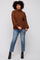 A fuzzy knit sweater featuring a fold-over turtle neckline and long sleeves.