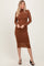 Brown Lace Overlay Long Sleeve Fitted Midi Dress