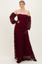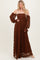 Brown Lace Smocked Long Sleeve Off Shoulder Maxi Dress
