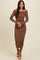 Brown Off Shoulder Ribbed Knit Side Slit Midi Dress