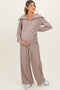 Brown Ribbed Half Zip Pullover Wide Leg Pant Maternity Set