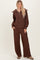 Brown Ribbed Half Zip Pullover Wide Leg Pant Set