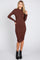 Brown Ribbed Mock Neck Ruched Long Sleeve Dress