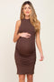 A solid fitted midi dress in a ribbed material with side ruching on both sides.