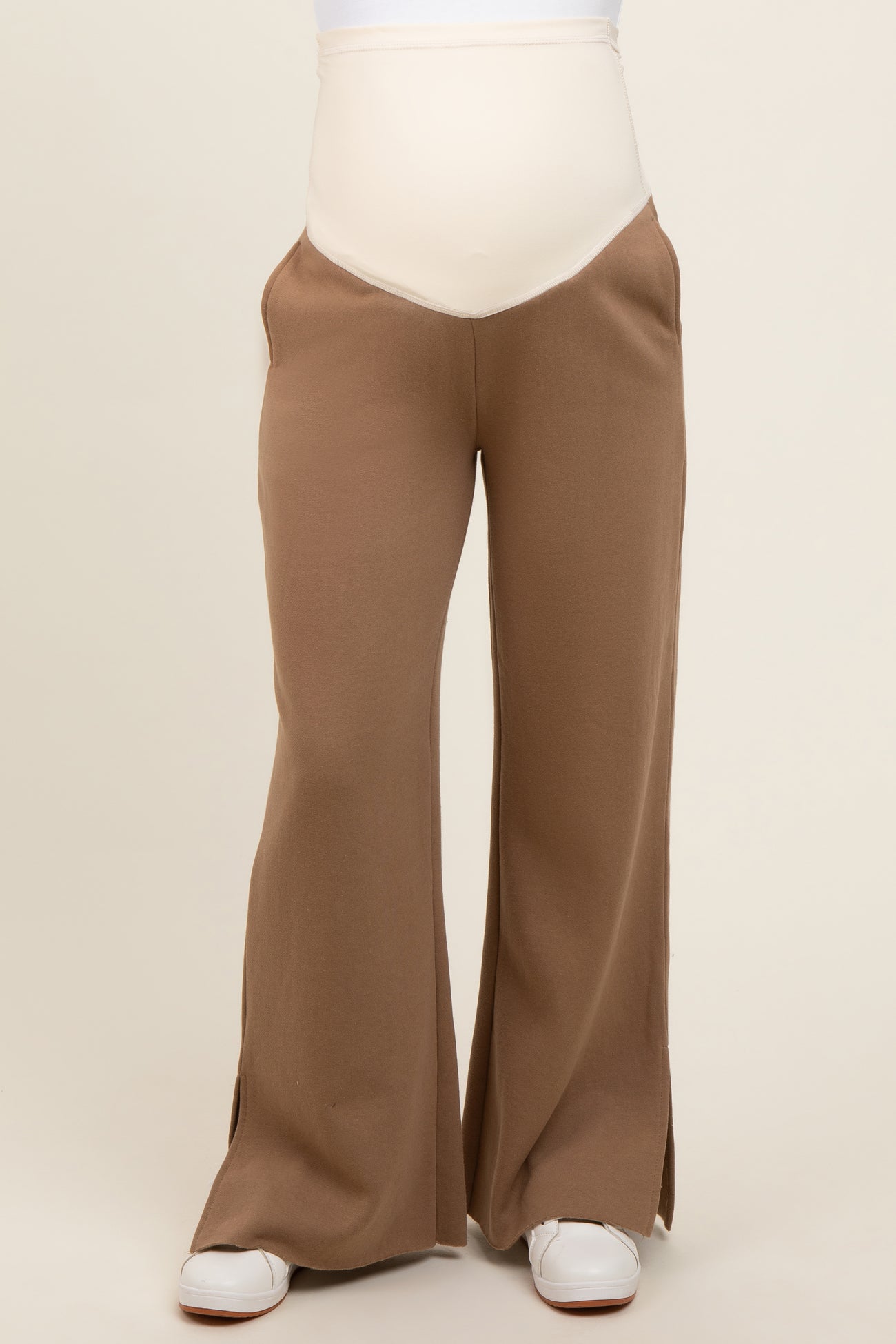 Brown Soft Wide Leg Side Slit Maternity Sweatpants