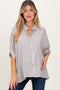 Elevate your casual wardrobe with our Brown Striped Button-Up Dolman Top. Featuring a relaxed dolman sleeve design and a classic collar, this top offers effortless style and comfort. The vertical brown stripes add a touch of timeless sophistication, while the lightweight fabric keeps you cool all day long. Perfectly paired with jeans or tailored pants, it's a versatile addition for work, weekends, or casual outings. The button-up front allows for easy layering and adjustable coverage. Embrace a chic, laid-back look with this must-have top that combines comfort and modern flair seamlessly. Available in multiple sizes for the perfect fit.