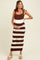Brown Striped Knit Shoulder Tie Maternity Maxi Dress