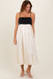 Brown Striped Ruched Bodice Balloon Sleeved Midi Dress