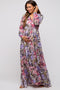 An animal printed maternity top with a mock neckline and long sleeves. Top features a long length.
