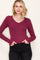 Burgundy Fine Rib V-Neck Long Sleeve Top