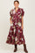Burgundy Floral Puff Sleeve Button Down Midi Dress