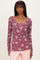 Burgundy Floral Ribbed Long Sleeve Button Down Tunic Top