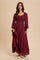 Burgundy Lace Inset Smocked Maxi Dress