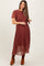 Burgundy Leaf Print Pleated Maternity Midi Dress