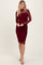 Burgundy Mesh Overlay Long Sleeve Midi Dress