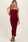 Burgundy Rhinestone Fitted Ruched Maternity Maxi Dress