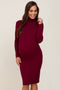 Burgundy Rib Knit Turtleneck Sweater Dress