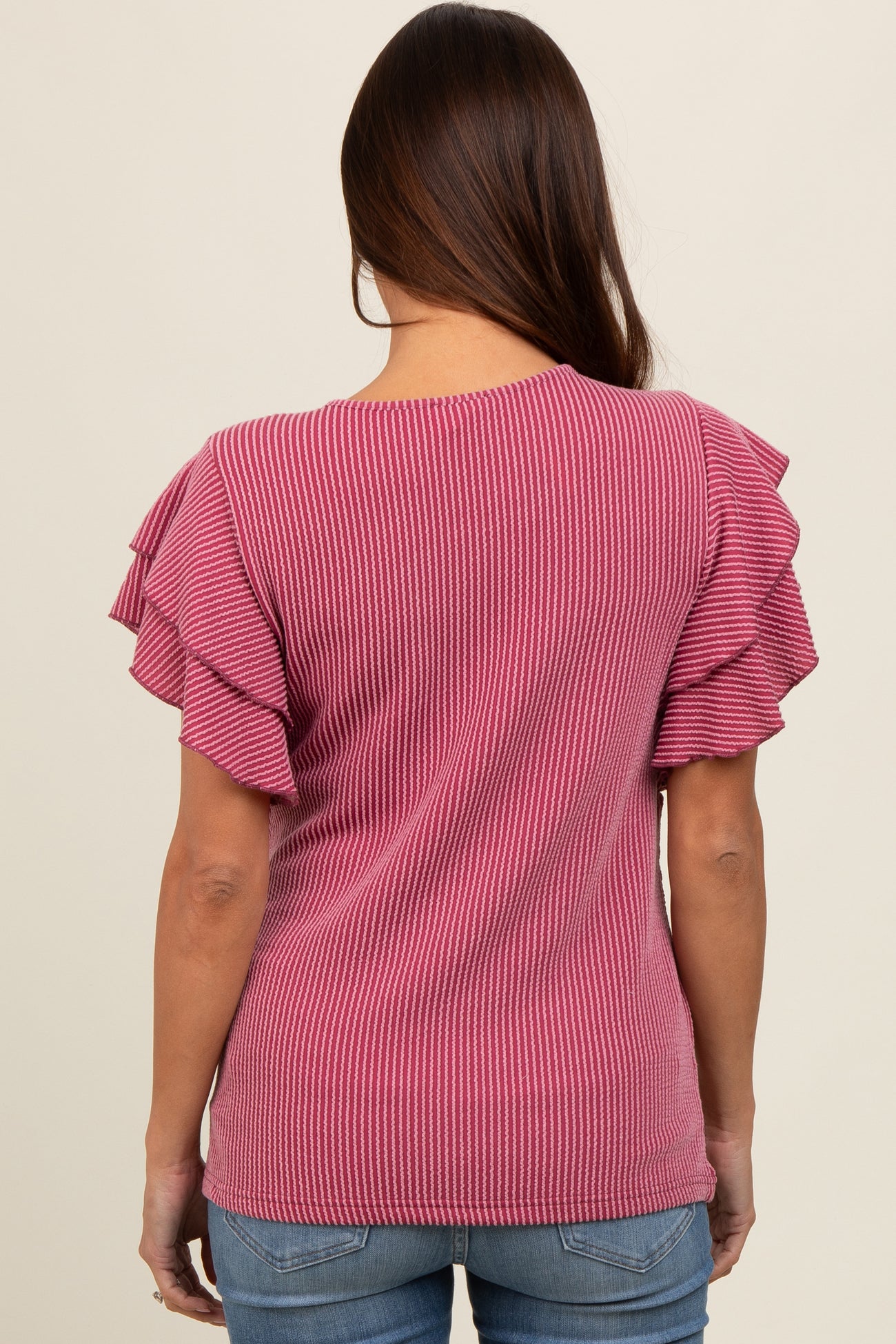Burgundy Ruffle Sleeve Ribbed Maternity Top