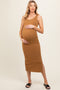A rib knit, striped maternity dress with a scoop neckline and a racerback.