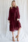 Burgundy Swiss Dot Ruffle Accent Midi Dress