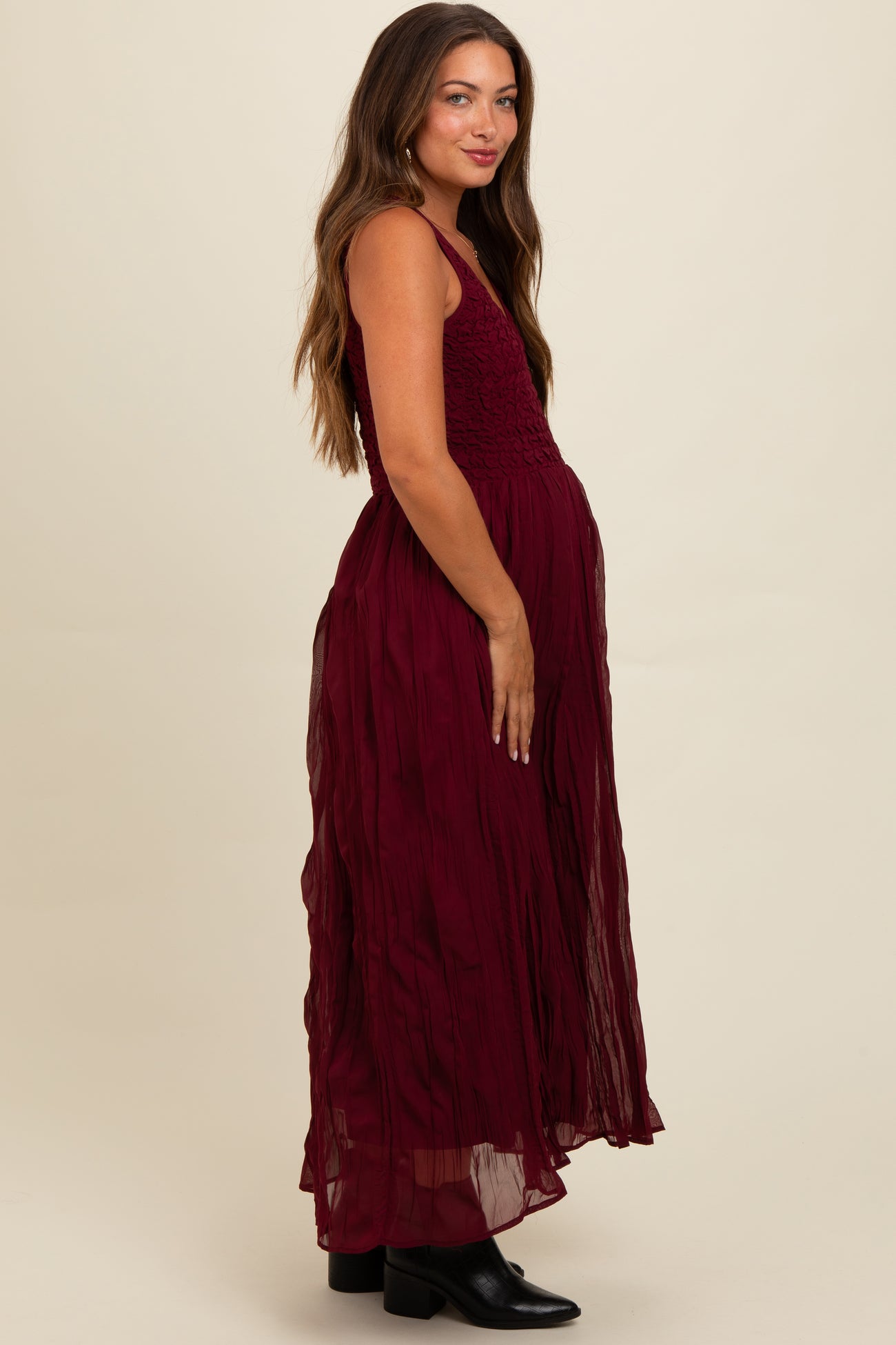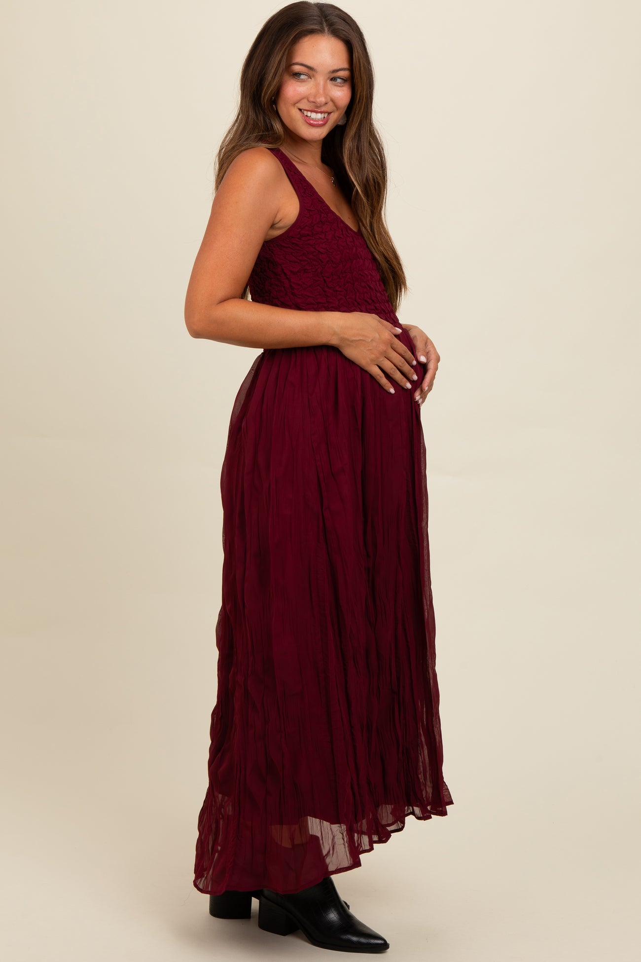 Burgundy Textured Smocked Bodice Sleeveless Maternity Maxi Dress