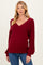 Burgundy V-Neck Drop Shoulder Back Bow Tie Detail Maternity Sweater