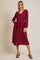 Burgundy V Neck Long Sleeve Button Down Midi Dress