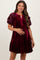 Burgundy Velvet Floral Lace Short Sleeve Maternity Dress