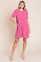 Burgundy Washed Ribbed Puff Sleeve Dress