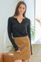 A fitted top featuring front buttons, long sleeves and a v-neckline.