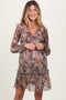 Camel Cotton Gauze Long Sleeve Tiered Maternity Midi Dress