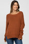 A sweater featuring a crew neckline, ribbed trim, exposed seam detailing, long sleeves and side slits.