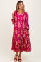 Embrace effortless style with our Camel Floral Button Down Long Sleeve Midi Dress. Featuring an elegant camel base with a delicate white floral print, this dress combines timeless charm with modern comfort. The button-down front adds versatility, while the long sleeves with elastic cuffs offer a flattering, slightly puffed look. Designed with a midi-length silhouette, it’s perfect for day-to-night wear. Functional side pockets add practicality without sacrificing style. Pair it with sandals for a casual outing or dress it up with heels for a polished vibe. A must-have addition to your wardrobe!