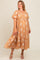 Camel Floral Print Ruffle Hem Maternity Plus Midi Dress