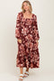Camel Floral Tiered Puff Sleeve Midi Dress