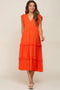 A leaf print maternity midi dress with a front tie top, an off the shoulder neckline, short sleeves, an elastic waist, and a handkerchief flounce skirt.