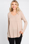 A rib knit sweater featuring a rounded neckline, an exposed center front seam, and an exposed center back seam.